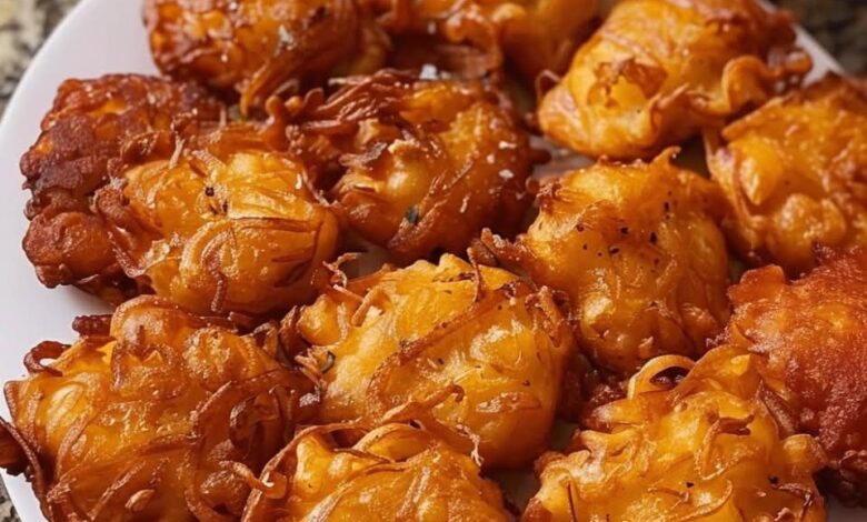 6. Fry to Perfection: Carefully drop heaping tablespoonfuls of the onion-batter mixture into the hot oil. Do not overcrowd the pan. Fry for 2-3 minutes per side, or until deeply golden brown and crispy. Flip once during cooking.