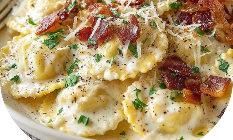 Of course! Here is a comprehensive, “big” recipe for an Olive Garden-Inspired Ravioli Carbonara, complete with all the sections you’ve requested.
