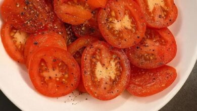 Sliced Tomato with Salt & Pepper A simple dish that proves fresh ingredients need very little to shine.…