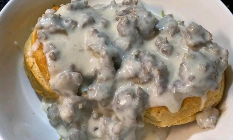 This comforting dish pairs golden, buttery biscuits with a rich white gravy made from seasoned pork sausage, flour, milk, and black pepper. The contrast between the fluffy biscuits and the savory, velvety gravy creates a deeply satisfying meal that’s both indulgent and grounding.