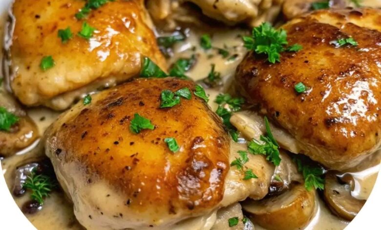 Chicken Thighs with Creamy Mushroom Garlic Sauce is a comforting and flavorful dish that brings together tender, juicy chicken and a luxuriously smooth sauce infused with garlic and earthy mushrooms. This recipe is ideal for cozy family dinners or elegant gatherings, offering restaurant-quality taste with simple, wholesome ingredients.