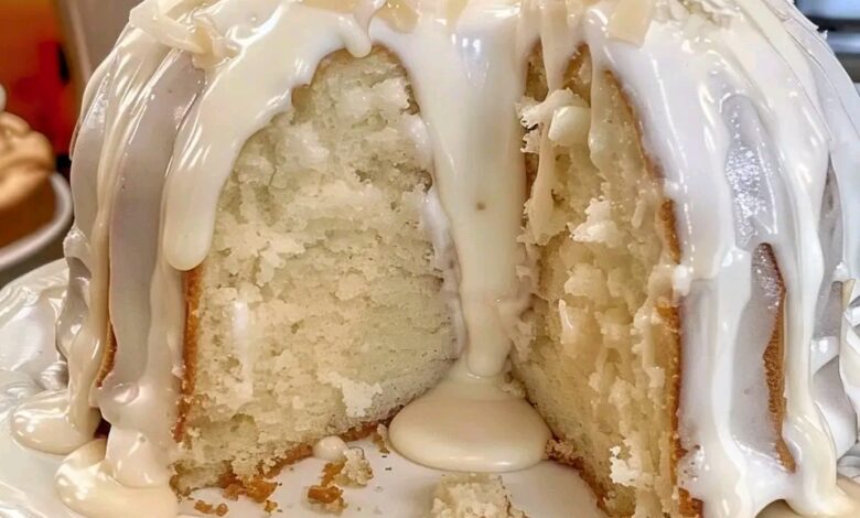 This pound cake is golden brown with a tender yet dense crumb, buttery aroma, and a creamy vanilla-almond finish. The smooth glaze adds sweetness without overpowering the cake’s rich flavor, making every bite decadent and satisfying.