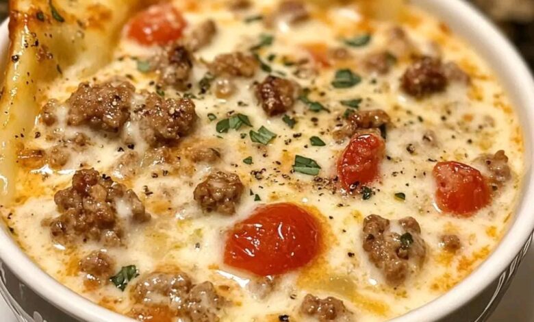 1. In a large saucepan over medium heat, brown the sausage until fully cooked. Add the chopped onion and sliced mushrooms, and cook for 5–6 minutes over medium-low heat until softened.