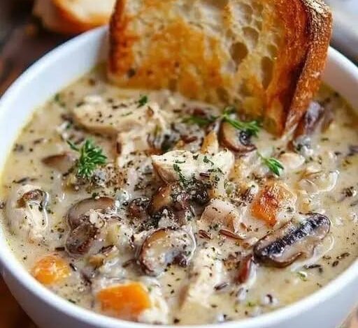 A rich, hearty meal that brings together earthy mushrooms, tender chicken, and flavorful wild rice in a warm, creamy broth — perfect for chilly evenings.
