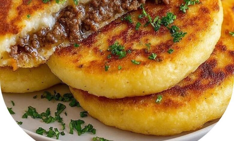 Crispy Mashed Potato Pancakes with a Savory Meat Filling,