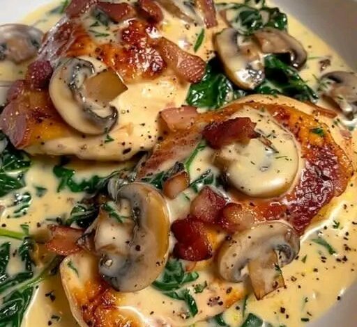 Decadent Creamy Garlic Mushroom & Spinach Chicken is the perfect balance of comfort and elegance. Tender chicken breasts are seared to golden perfection, then smothered in a rich garlic cream sauce filled with earthy mushrooms and vibrant spinach. It’s a restaurant-quality meal that comes together quickly, making it ideal for both busy weeknights and special dinners.