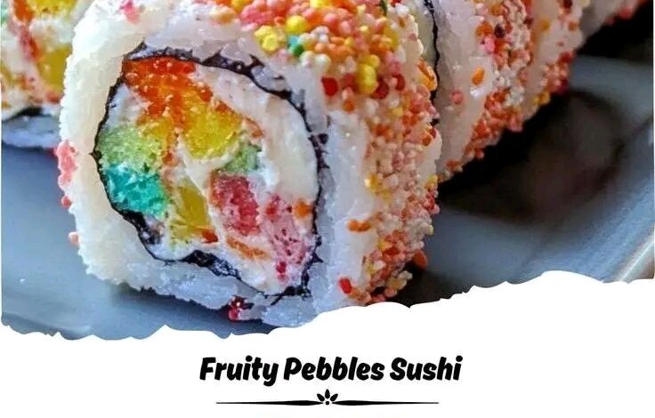 This recipe is part of the modern American trend of “dessert sushi,” where traditional Japanese sushi presentation inspires sweet treats. While authentic sushi is deeply rooted in Japanese culinary heritage, this playful adaptation reflects Western creativity and pop culture influence. Fruity Pebbles cereal itself was introduced in 1971 and became iconic through its association with The Flintstones, making it a nostalgic favorite across generations.