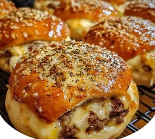 Garlic Parmesan Cheeseburger Bombs are delicious, bite-sized snacks made with juicy beef, melted cheese, and soft biscuit dough. Each one is brushed with rich garlic butter and sprinkled with Parmesan — perfect for game day, parties, or a fun family appetizer!
