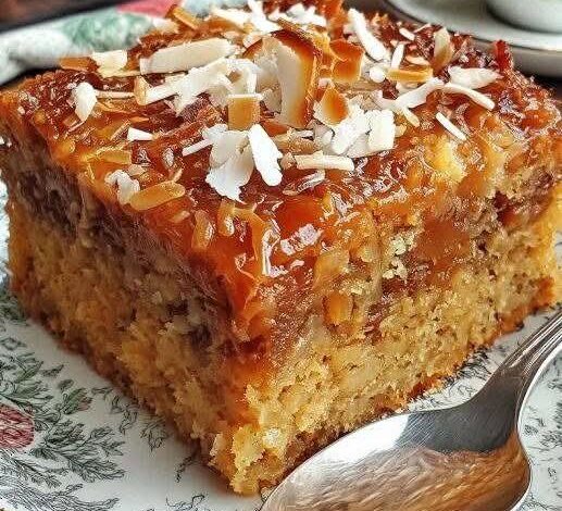 4. The Signature Topping: The final, defining step is the topping. While the cake bakes, a simple mixture of butter, brown sugar, milk or cream, shredded sweetened coconut, and often chopped pecans is combined . This is spread over the cake as soon as it comes out of the oven. The cake is then placed under the broiler for a couple of minutes until the topping bubbles, caramelizes, and turns a beautiful golden brown .
