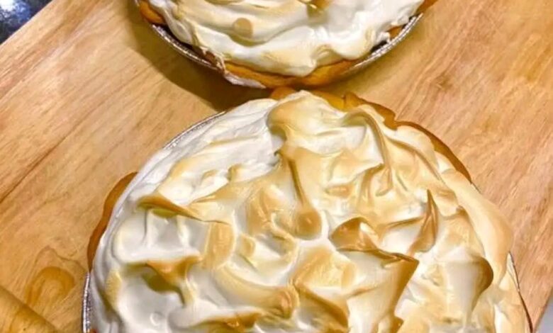 Beat on high speed until stiff peaks form. Generously spoon the meringue over the chocolate pies, spreading it to the edges.
