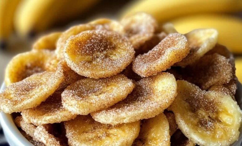 4. Lightly coat the banana slices with coconut oil, then sprinkle with the cinnamon-sugar mixture, tossing to make sure each piece is evenly covered.