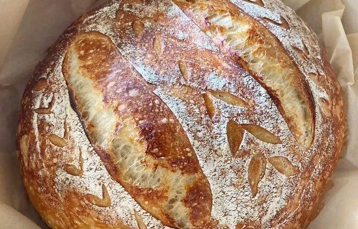 This overnight sourdough loaf has a crisp, golden crust and a soft, airy interior with a gentle tang. The long fermentation enhances both flavor and digestibility, while the simplified technique makes it accessible even for first-time bakers.