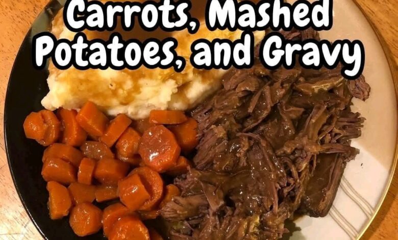 1. The Grand Finale: Slice the pot roast against the grain or shred it into large chunks. Serve a generous portion of the creamy mashed potatoes on each plate, top with the tender beef and carrots, and ladle the rich, savory gravy over everything .