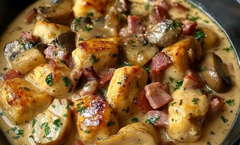 Poulet Crémeux aux Champignons et Bacon