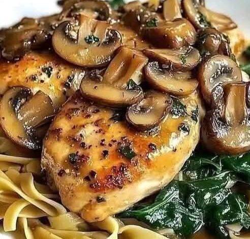 Savory Garlic Mushroom Chicken with Spinach 🍄🍗