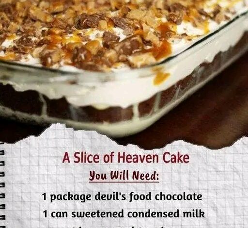 Slice of Heaven Cake is a modern American-style layered dessert often found in home kitchens and community gatherings. Recipes like this became popular because they are easy to prepare using convenient ingredients while still delivering bakery-quality flavor. It represents the tradition of sharing comforting homemade desserts with family and friends.