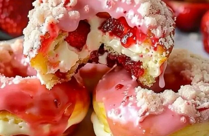 Strawberry Cheesecake Stuffed Donuts are the ultimate indulgence—soft, fluffy donuts filled with a rich and creamy strawberry cheesecake center and finished with a sweet vanilla glaze. This recipe combines the comfort of freshly fried donuts with the luxurious flavor of classic cheesecake, making it perfect for special occasions, weekend treats, or whenever you want to impress with a bakery-style dessert at home.