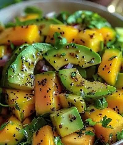 This isn’t just a salad; it’s a celebration of texture, color, and flavor. The Mango Avocado Salad is a dish that perfectly captures the essence of summer, no matter the time of year. It’s a simple yet elegant combination of sweet, juicy mangoes and creamy, buttery avocados, brought together with the sharpness of red onion, the freshness of lime, and the herbaceous notes of cilantro. Every bite offers a delightful contrast: the softness of the avocado against the slight firmness of the mango, punctuated by the aromatic pop of fresh herbs and the nutty crunch of sesame seeds.