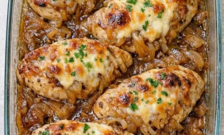 The Ultimate Comfort: Baked Chicken with Caramelized Onions and Melted Cheese