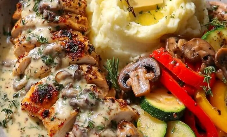 There are meals that simply feed you, and then there are meals that nourish you—body and soul. This Garlic Herb Chicken with Creamy Mashed Potatoes and Sautéed Veggies is firmly in the latter category. It’s the platonic ideal of a home-cooked dinner: a perfectly seared, juicy chicken breast draped in a rich, savory garlic cream sauce, nestled beside a mountain of fluffy, buttery mashed potatoes, and brightened by the fresh, vibrant pop of sautéed garden vegetables.