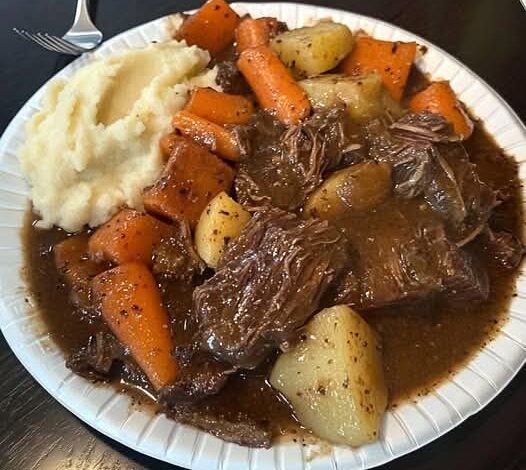 3. One hour before serving, add sautéed mushrooms, onions, and potatoes. Thicken with a cornstarch slurry (1 tbsp cornstarch + 2 tbsp water) if needed.